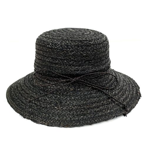 Wide Brim Braid Raffia Hat with Chin Tie