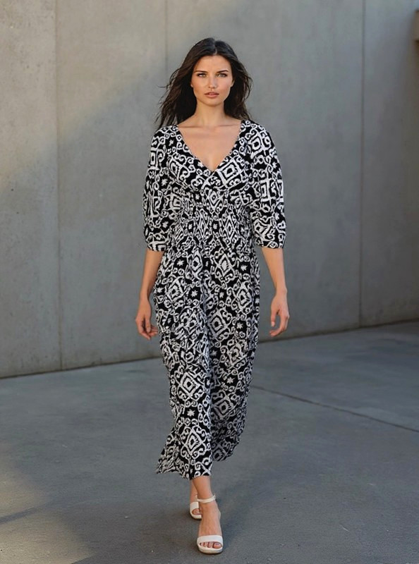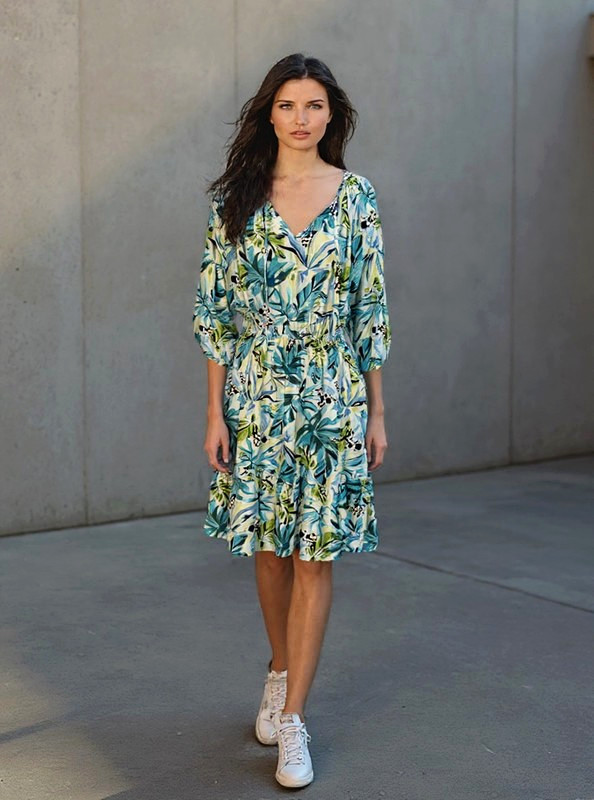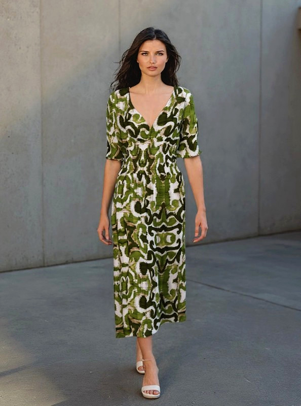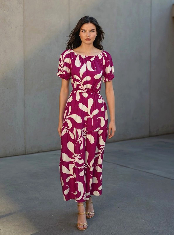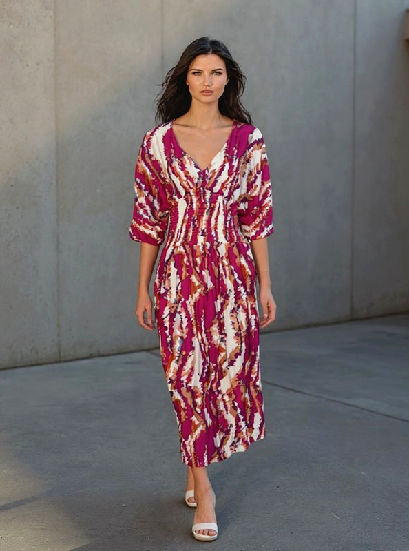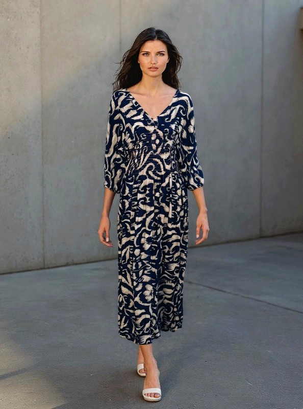 Stylish Paisley Midi Dress with Drawstring and Two Side Pockets (S/M/L) quantity