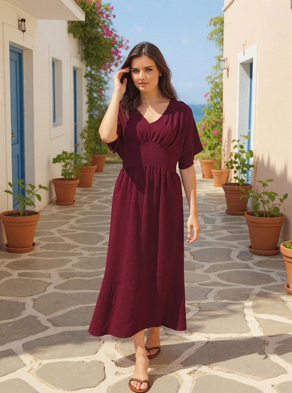 Comfy V Neck Midi Dress with Two Side Pockets (S/M/L) quantity