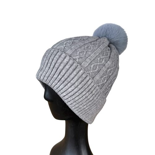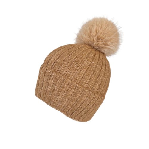 Wool Blend Rib Beanie with Pompom and Lining quantity