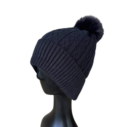 Diamond Knit Beanie with Pompom and Fleece Lining quantity