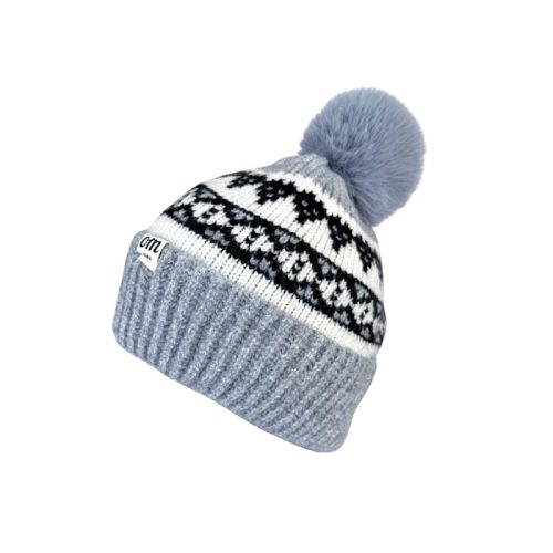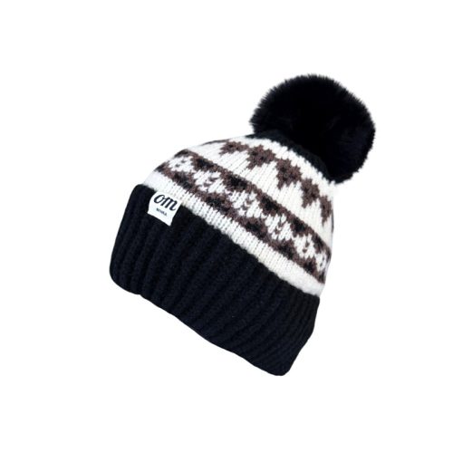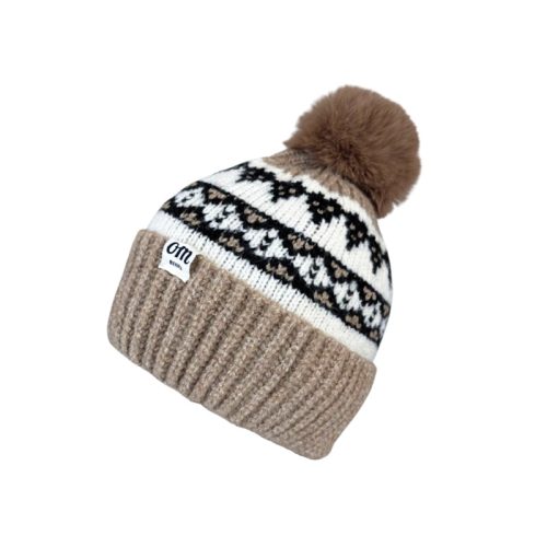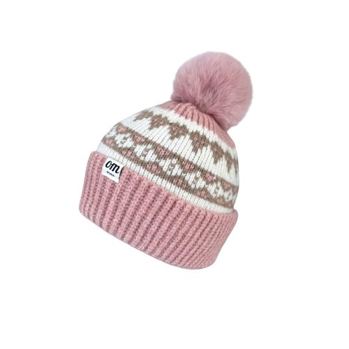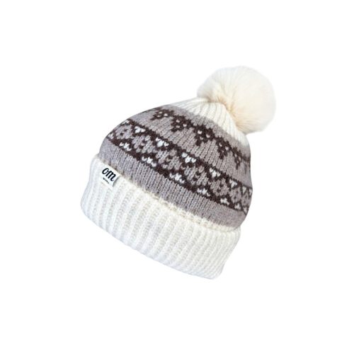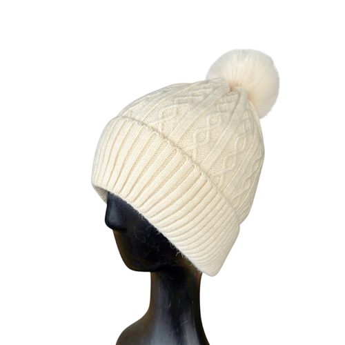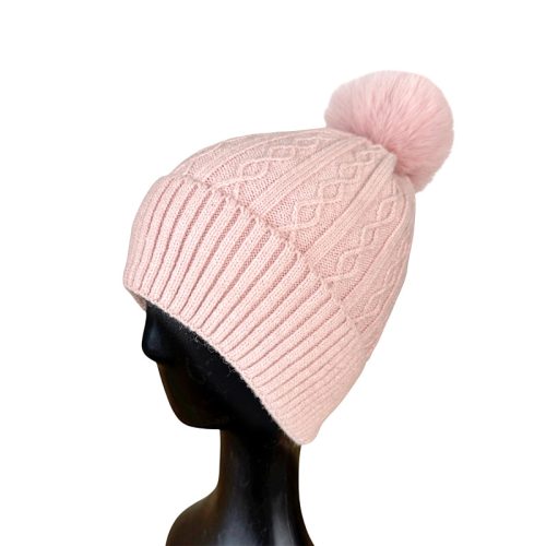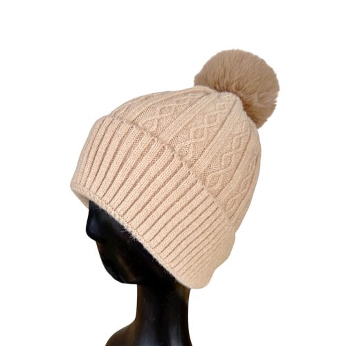 Diamond Knit Beanie with Pompom and Fleece Lining