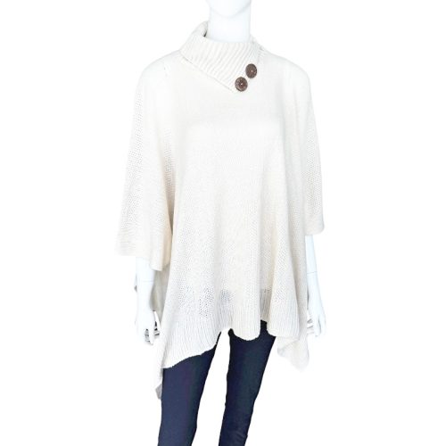 Chic Fold Neck Pullover Poncho with Buttons quantity