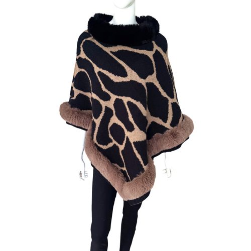 Stylish Fur Trim Poncho quantity