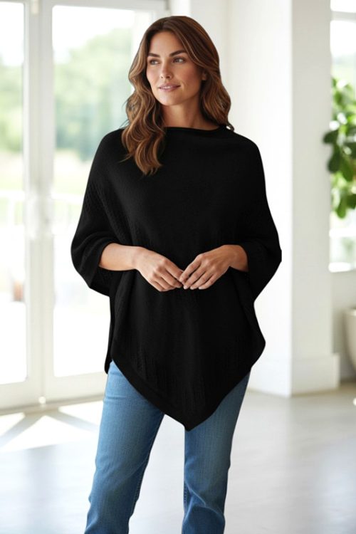 Stylish Split-at-Side Knitted Poncho