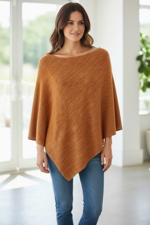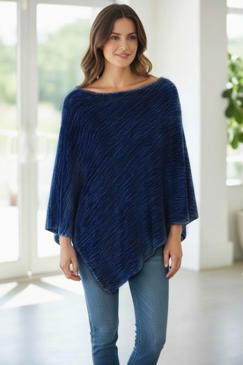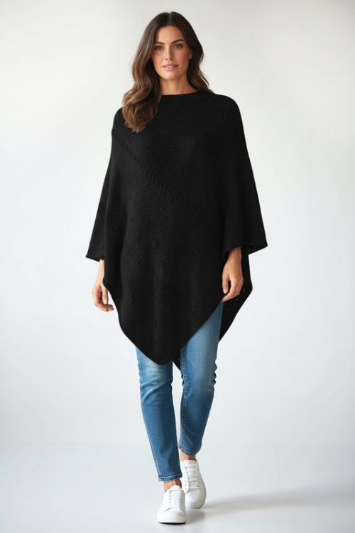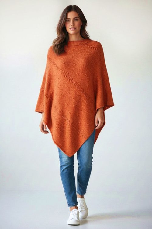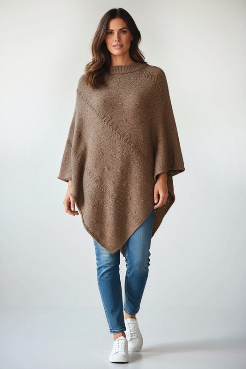Stylish Knitted Poncho with Diagonal Pattern quantity