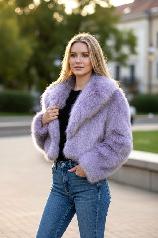 Cute Faux Fur Crop Jacket with Big Collar – S/M & L/XL