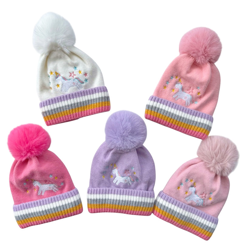 Cute Kids Unicorn Beanie with Pom and Lining