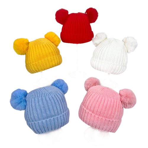 Kids Two Pompoms Beanie with Fleece Lining quantity
