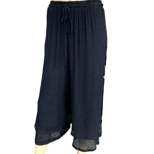 Double Layer Wide Leg Crop Pants with Side Buttons – S/M & L/XL