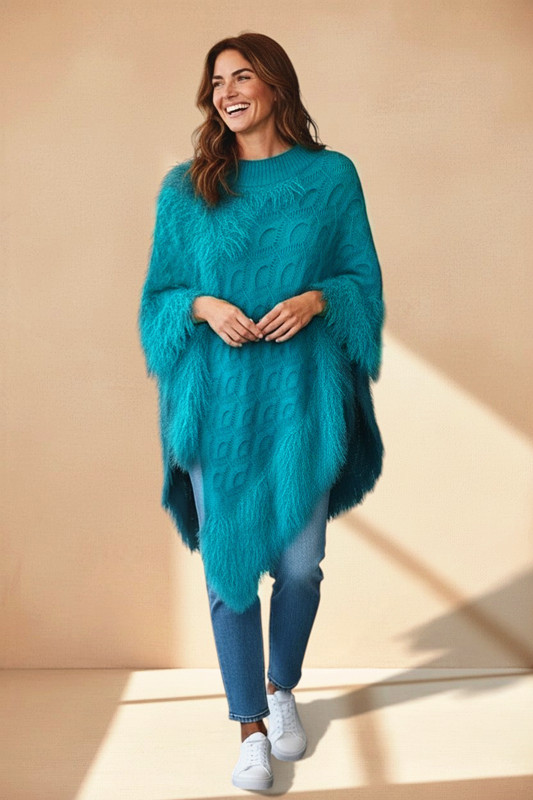 Luxe Pullover Poncho with Fur Deco