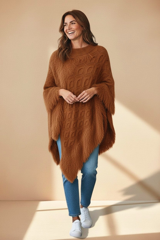 Luxe Pullover Poncho with Fur Deco