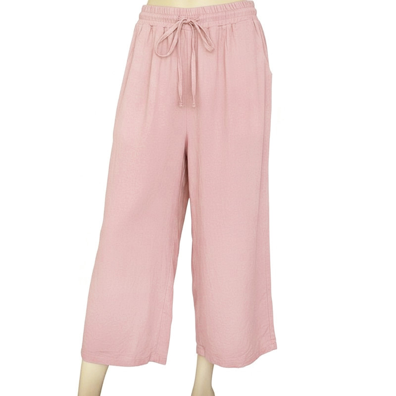 Solid Color Cropped Pants with Side Pockets – S/M & L/XL