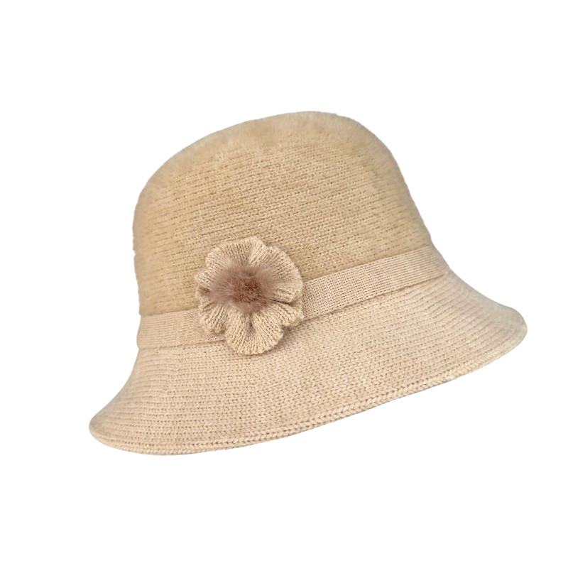 Item Number: HT320070-01Stylish Rolled Brim Hat with Pom Bow Deco