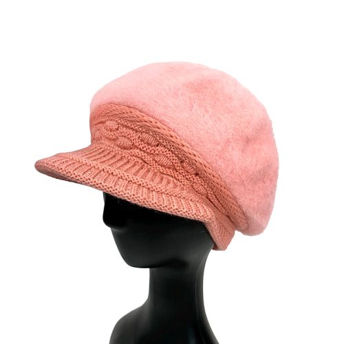 Melange Mohair Cable Pattern Beanie with Color Pom