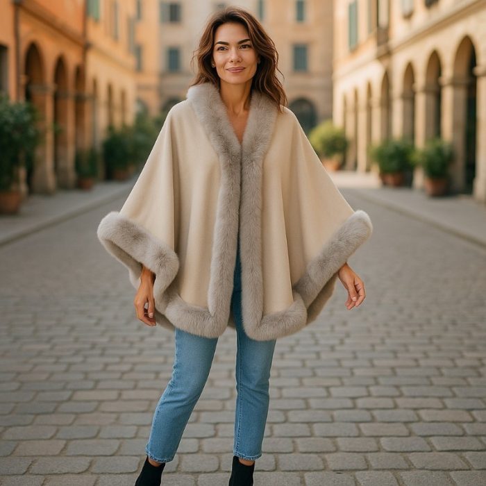 Stylish Jumbo Cape with Faux Fur Trim quantity