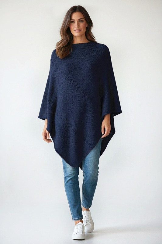 Stylish Knitted Poncho with Diagonal Pattern quantity