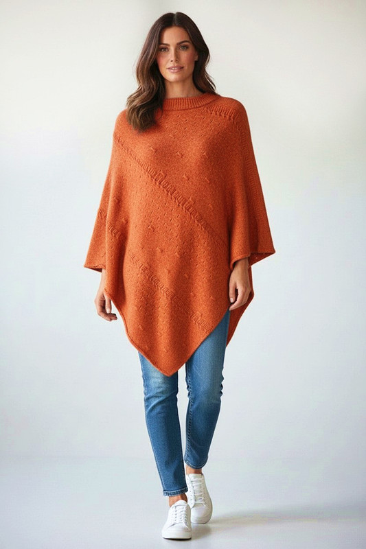 Stylish Knitted Poncho with Diagonal Pattern quantity