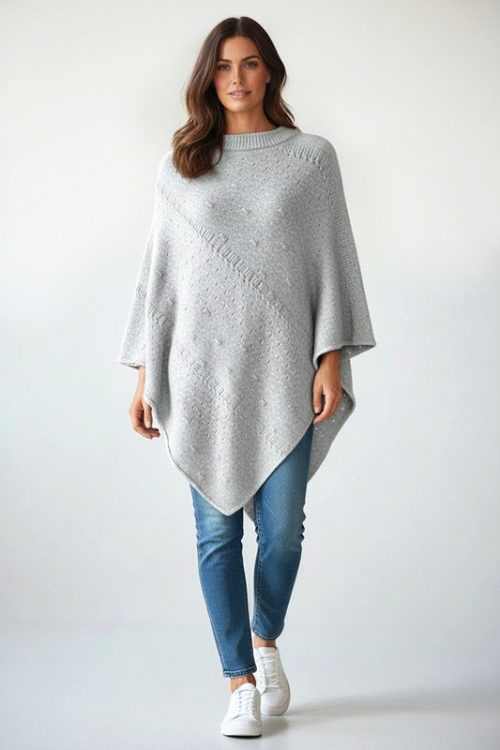 Stylish Knitted Poncho with Diagonal Pattern quantity