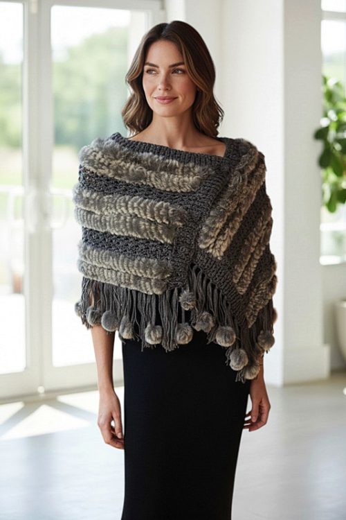 Stylish Split-at-Side Knitted Poncho