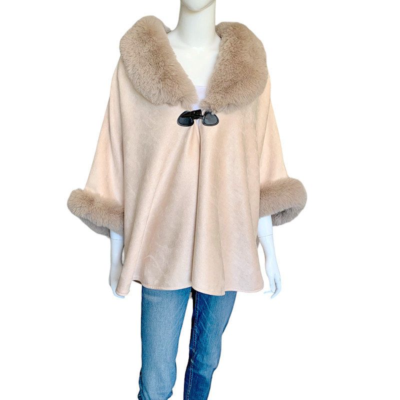Suede Poncho with Faux Fur Collar and Cuffs quantity