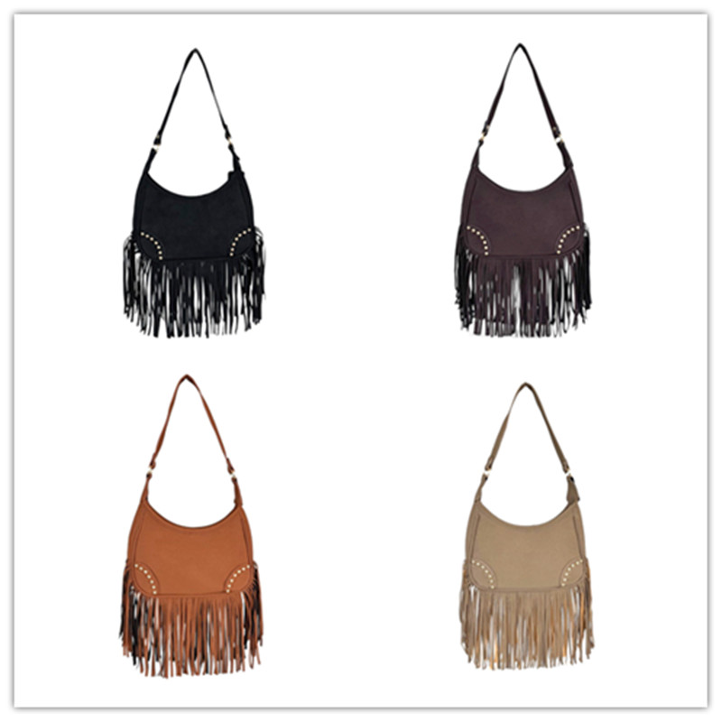 Vegan Suede Boho Fringe Crossbody Bag / Shoulder Bag – One Color Each