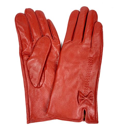 Genuine Leather Bow Glove with Warm Lining – Size L